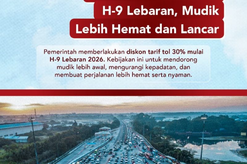 JAKARTA – Bokir,id.- (9/3/2026), Pemerintah memberikan kabar baik bagi masyarakat yang akan melakukan perjalanan mudik pada Lebaran tahun ini. Diskon tarif jalan tol sebesar 30 persen akan diberlakukan mulai H-9 menjelang Idul Fitri 2026 sebagai upaya mengurai kepadatan arus kendaraan selama periode mudik.